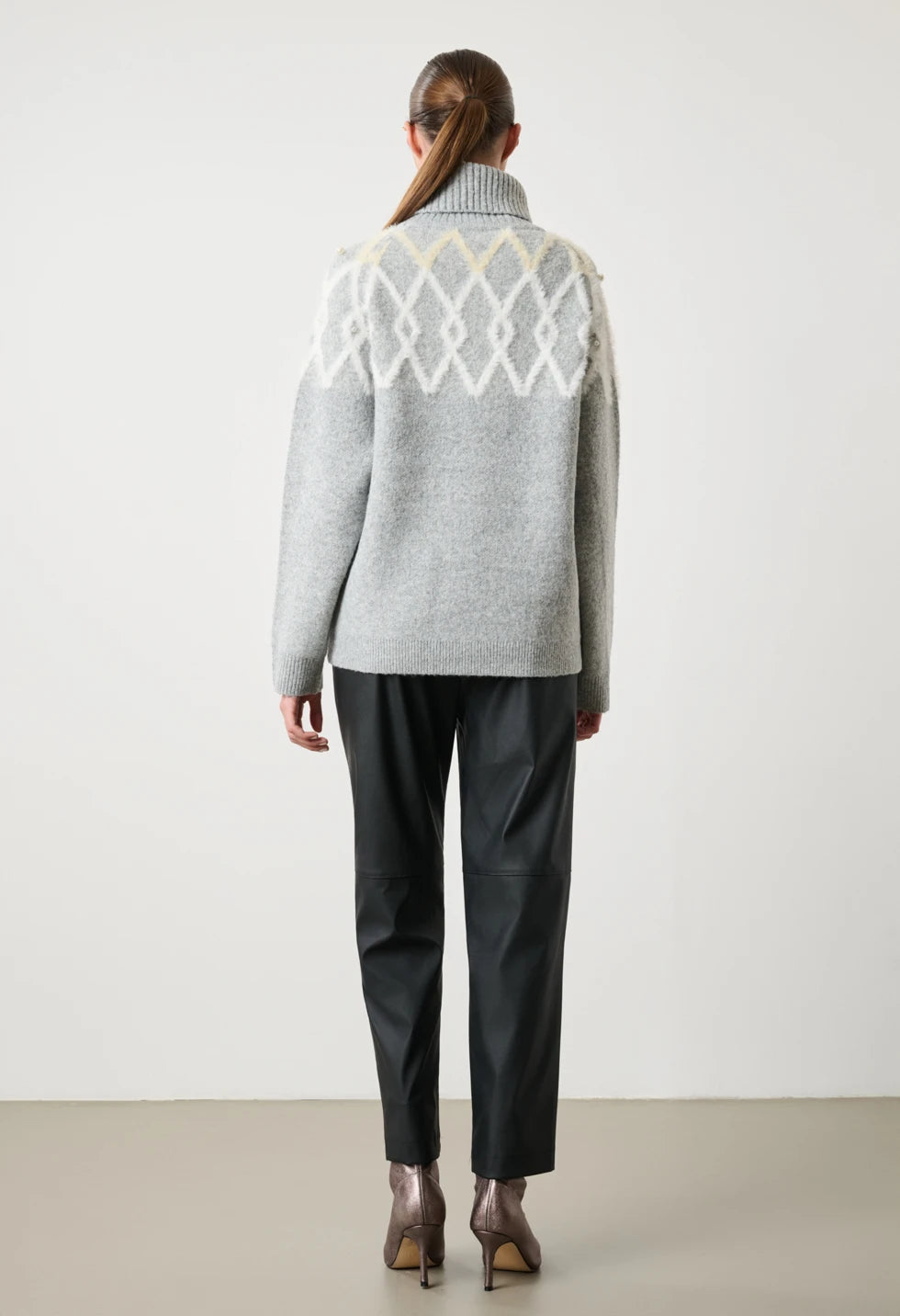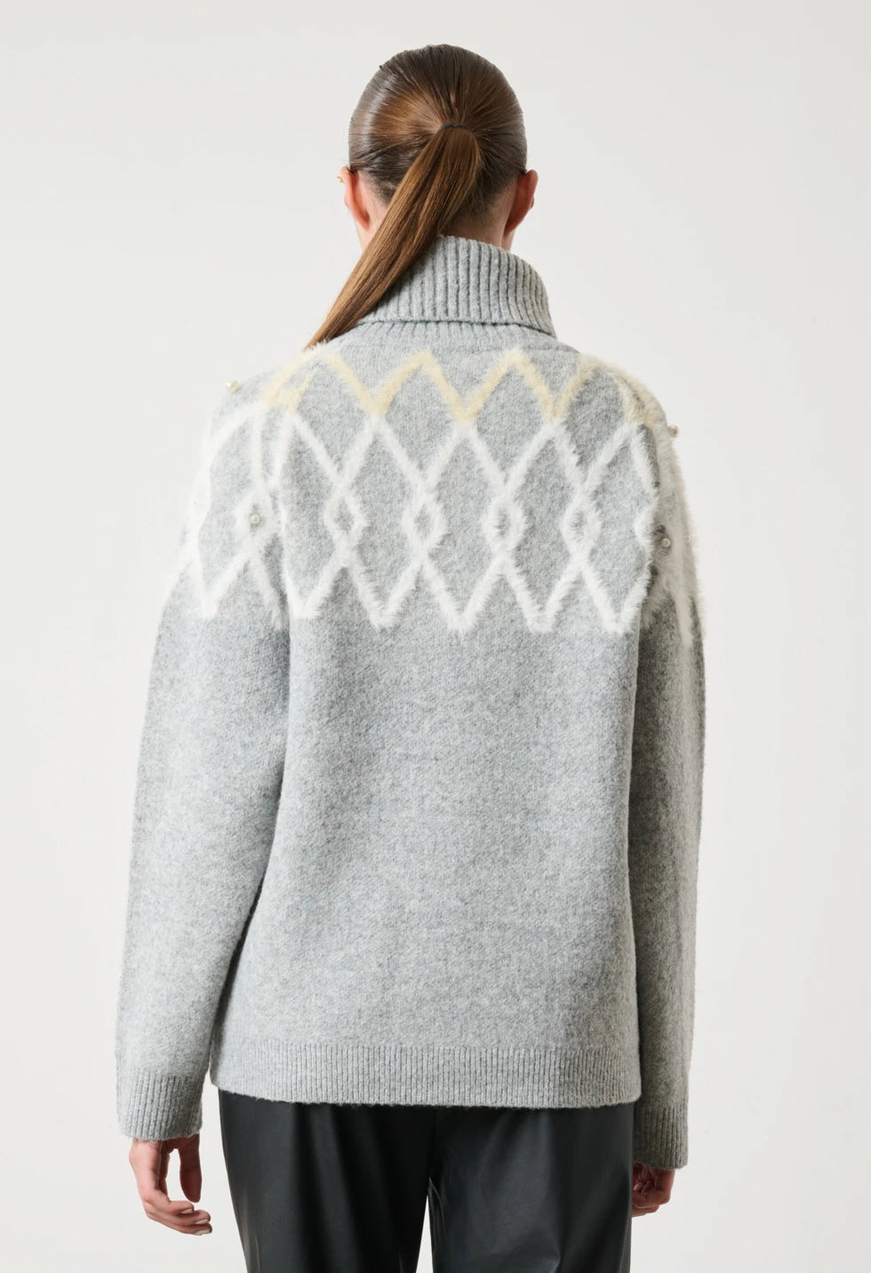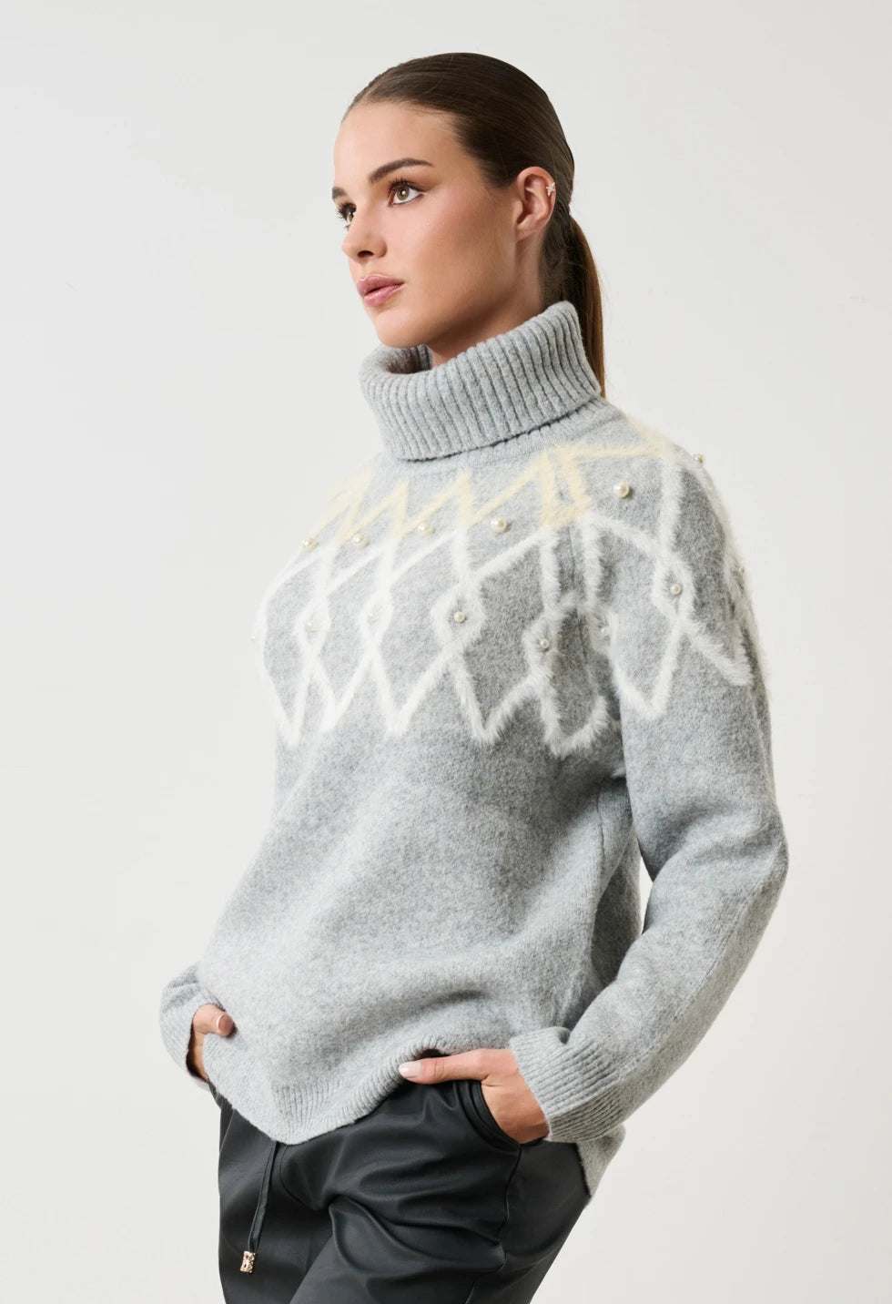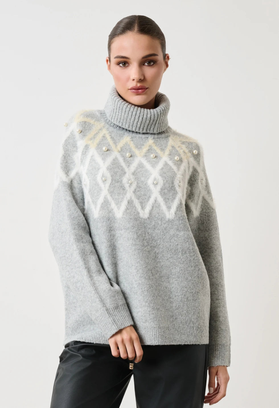 DESIREE | Πλεκτό Πουλόβερ Ζιβάγκο με Ρόμβους & Μαργαριτάρια