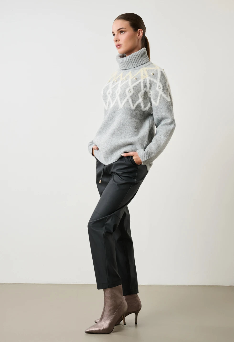 Αναβαθμίστε τα χειμερινά σας looks με το μοναδικό Πλεκτό Πουλόβερ Ζιβάγκο της Desiree. Αυτό το statement πλεκτό συνδυάζει την απόλυτη ζεστασιά με τη ρομαντική πολυτέλεια χάρη στα διακριτικά διακοσμητικά μαργαριτάρια και τα κομψά ανάγλυφα σχέδια ρόμβων.